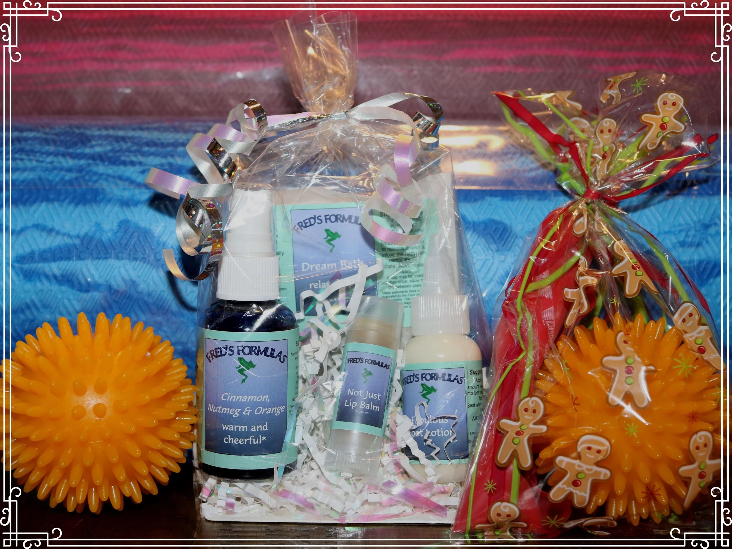 We are so excited to offer a gift bag from Fred's Formulas - a local company focusing on herbal topicals, tinctures, and blends. These gifts were handcrafted with scents for the holiday season. Grab one while supplies last at $20/bag!